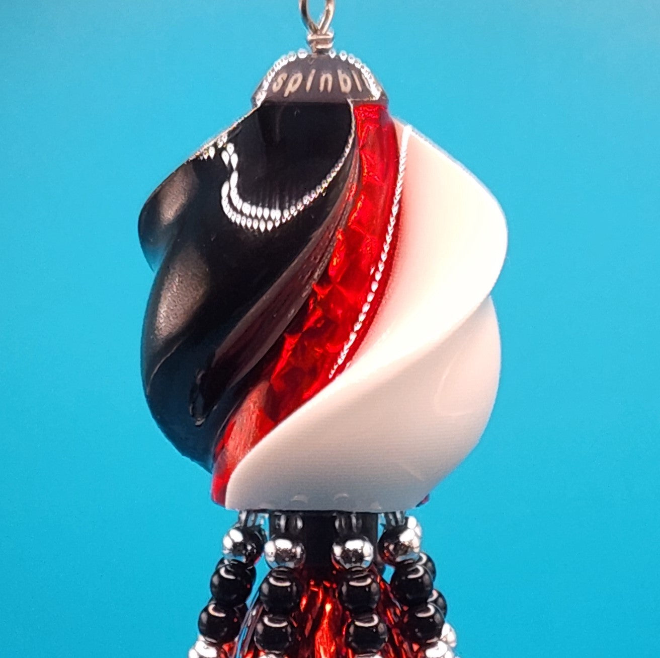 The lure body is epoxy coated and available in a variety of color combinations. Spiral channels cause it to spin through the water and present a constant flash of color. An internal chamber filled with ball bearings generates a rattling vibration as it spins.