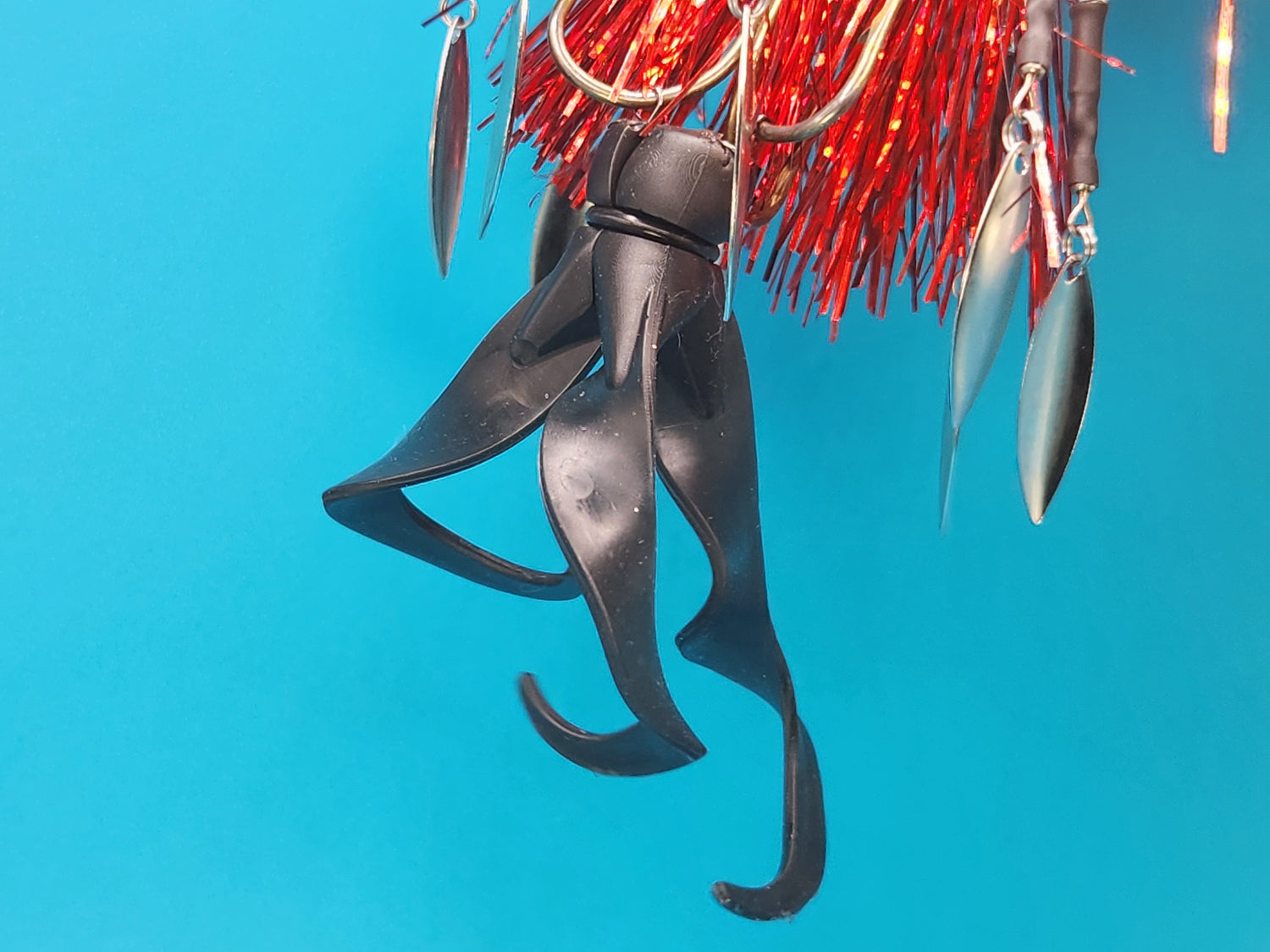 Our custom triple grub 'Trebler' tail trails behind the lure providing an attractive fluttering motion. It attaches directly to treble hook and can be easily replaced in seconds. The Trebler tail also works well with your bucktails, spoons, etc.