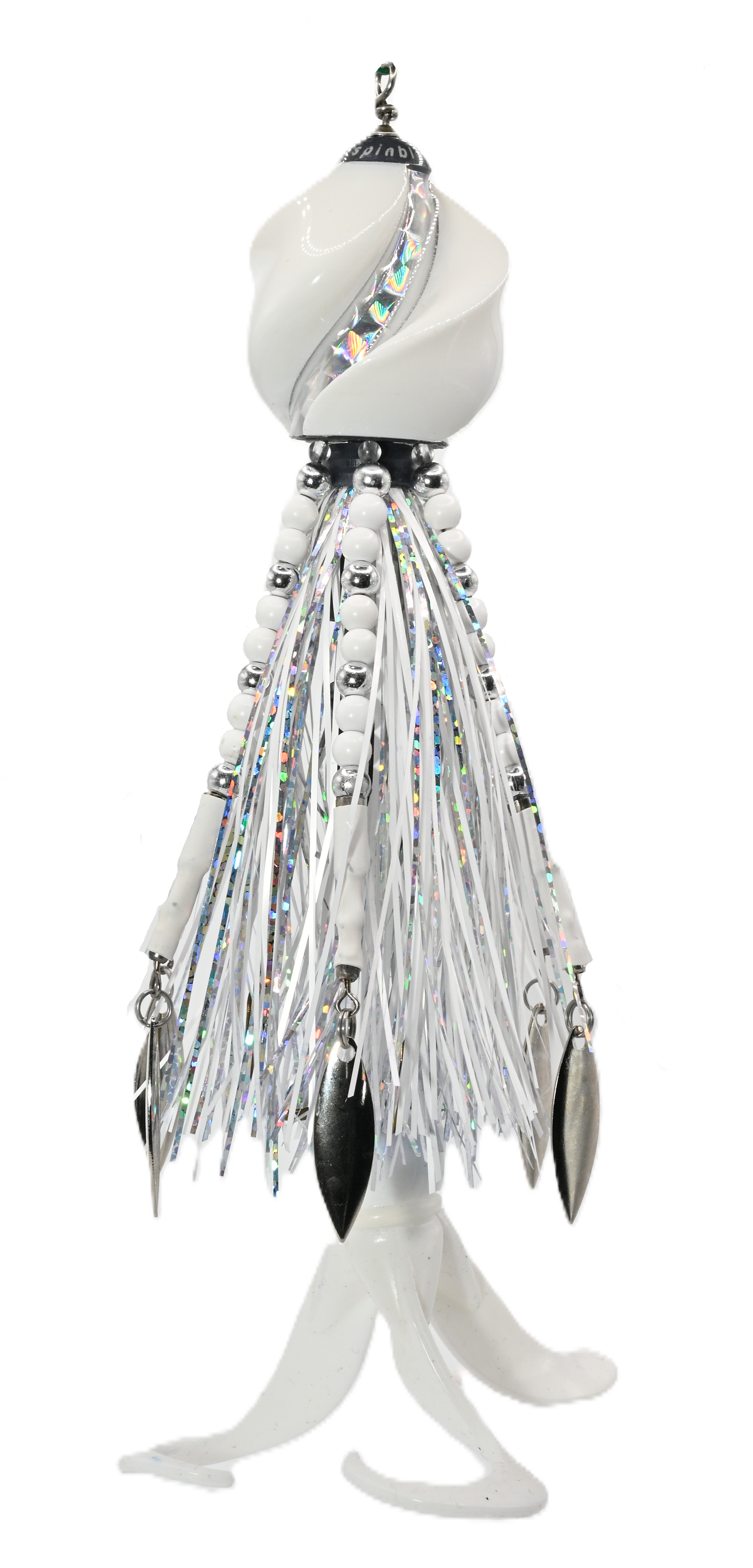 All White head with silver trim and bright nickel blades. White tail. 7 in. 2.5 oz.